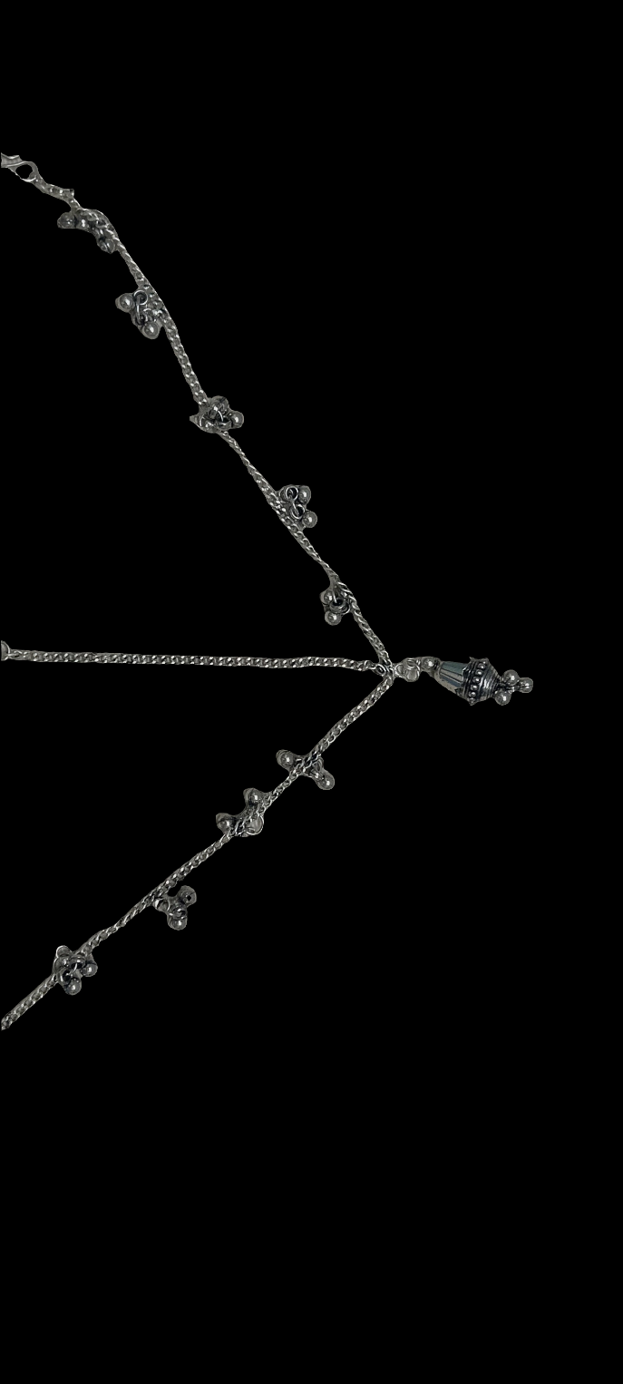 Add a touch of elegance to your look with our Maang tika. Perfect for Navratri, this accessory will enhance your hair and complete your outfit. Stand out and feel confident with this must-have piece.